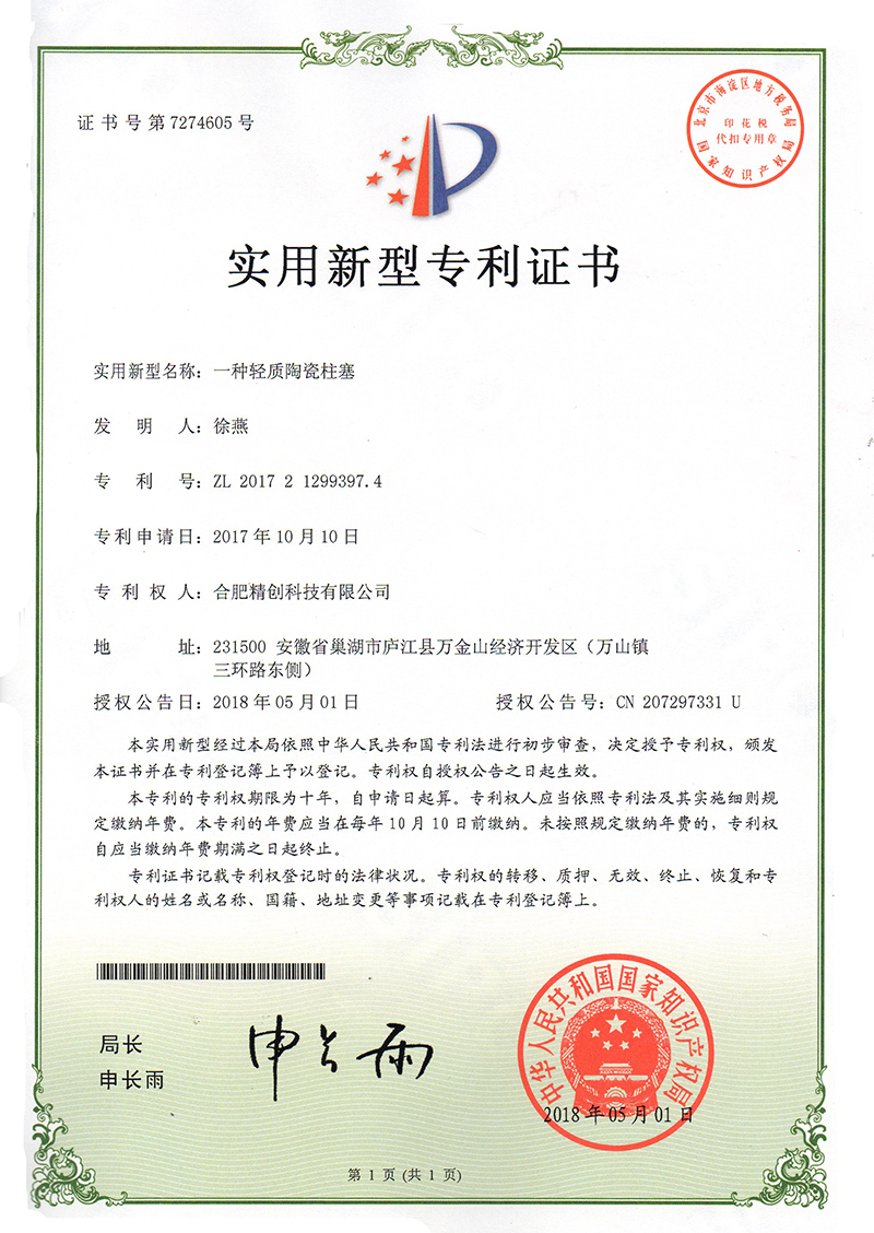 (2018實用新型)一種輕質陶瓷柱塞